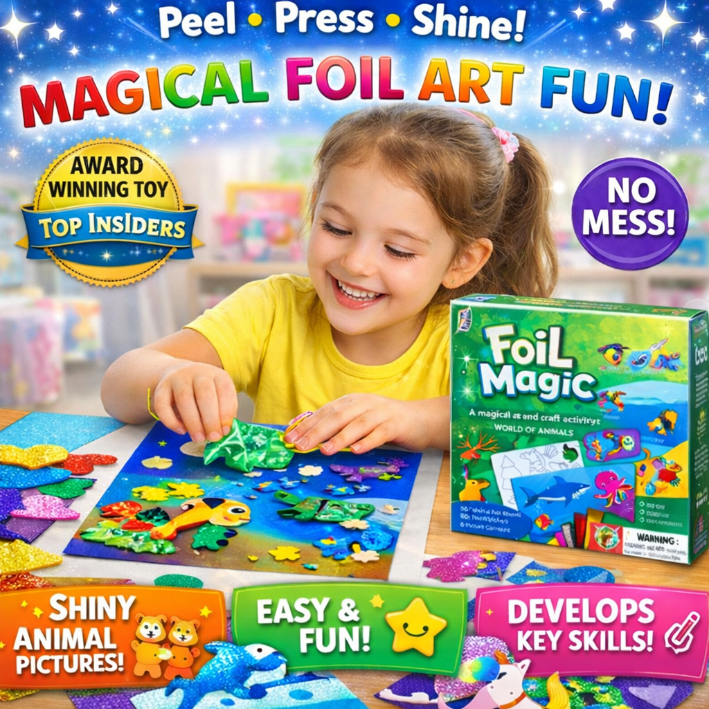 Turn ordinary craft time into a magical, mess-free adventure your child will absolutely love. With shimmering foil, playful designs, and simple peel-and-press fun, this creative kit transforms little hands into proud artists in minutes—no glue, no scissors, no cleanup required. While they sparkle and shine, children quietly build fine motor skills, focus, confidence, and imagination through independent, screen-free play.
