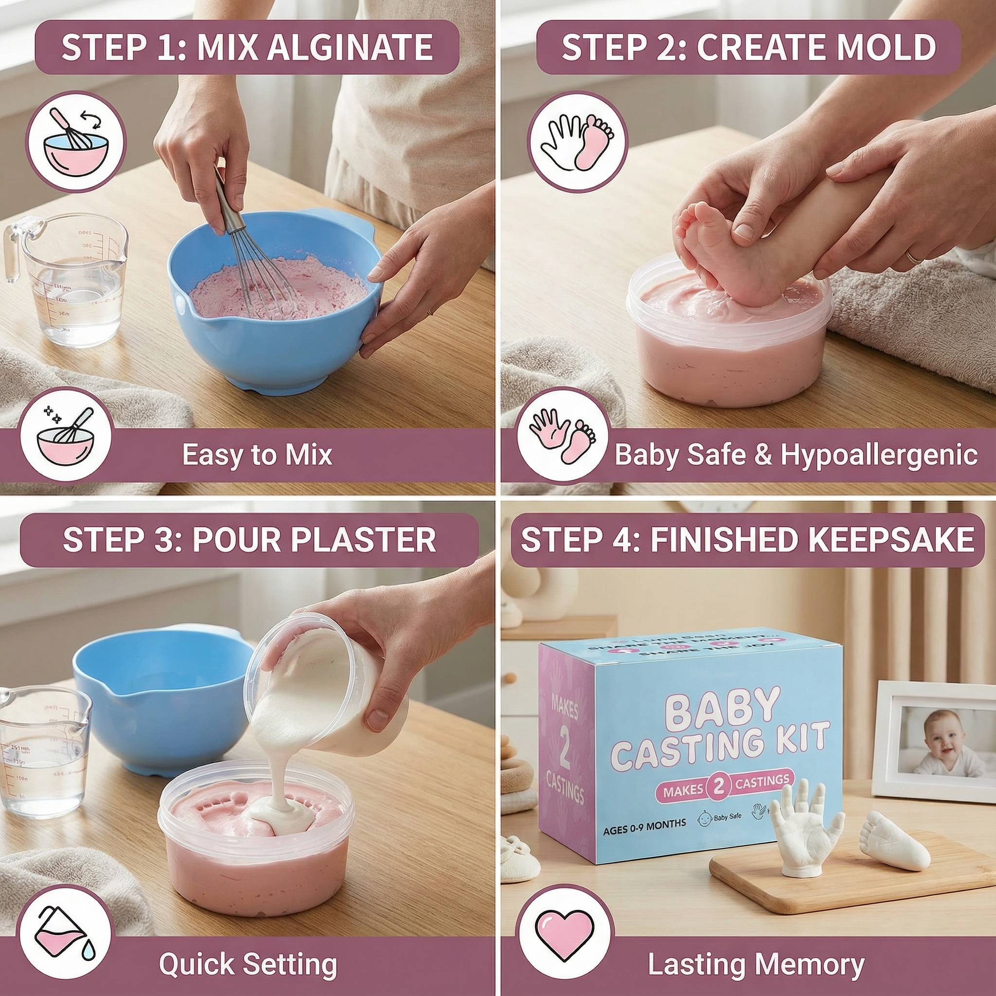 Capture the delicate details of your newborn’s little hands and feet in a beautifully preserved keepsake that lasts a lifetime. This easy-to-use casting kit safely records every wrinkle, crease, and curve—turning fleeting first days into a timeless memory you can hold, display, and treasure forever.
