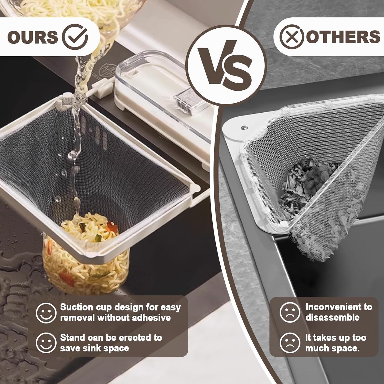 This is your ultimate kitchen companion for a cleaner, more efficient sink. This all-in-one kit includes a Foldable Strainer Rack and durable filter mesh bags designed to make kitchen cleanup effortless. Say goodbye to clogged sinks and messy cleanups.